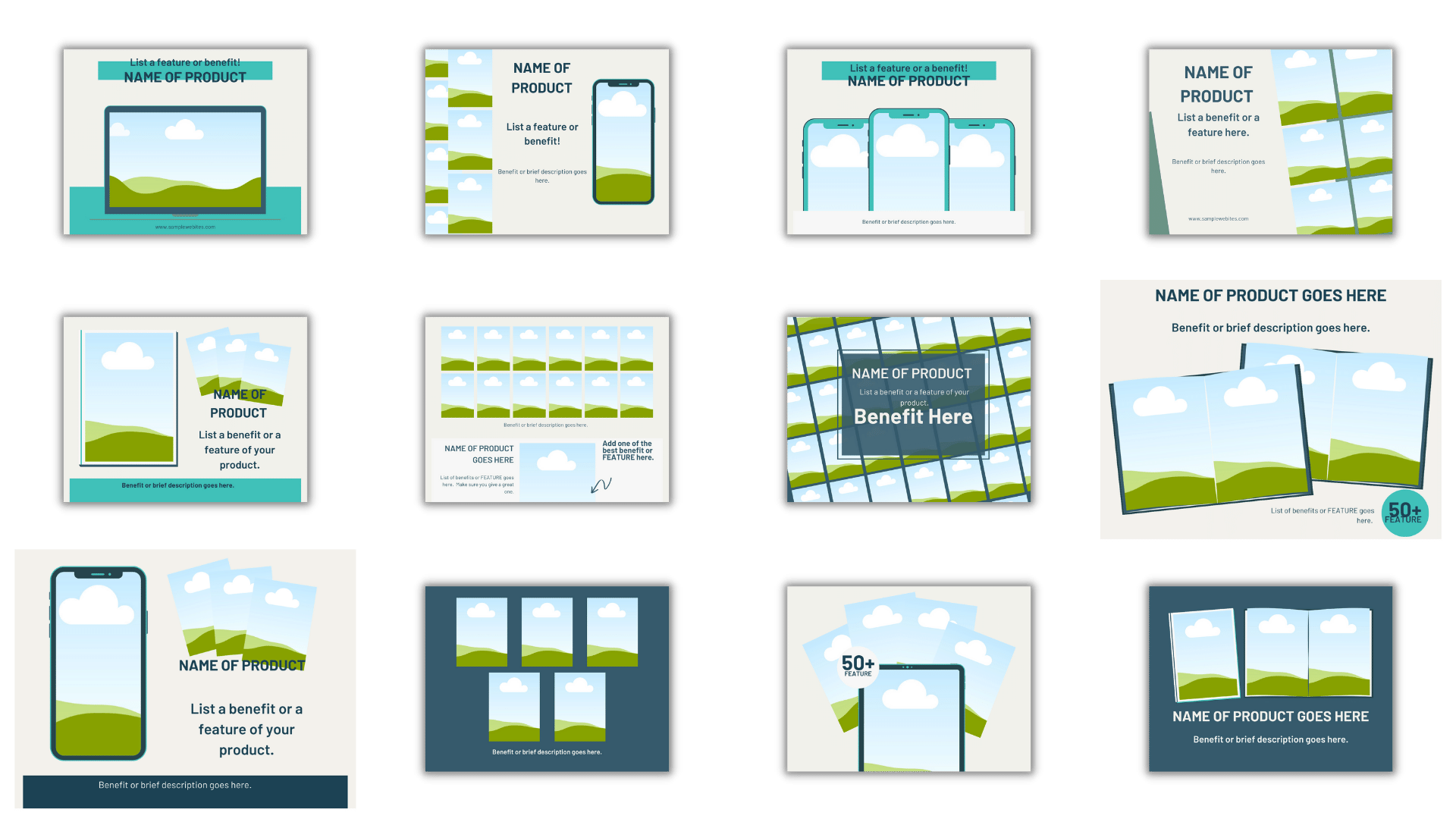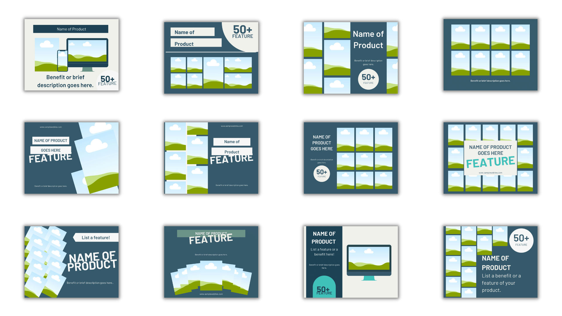 In this section, you'll get professionally designed product listing mockups All you have to do is add your product images, brand it, and change anything that doesn't fit.