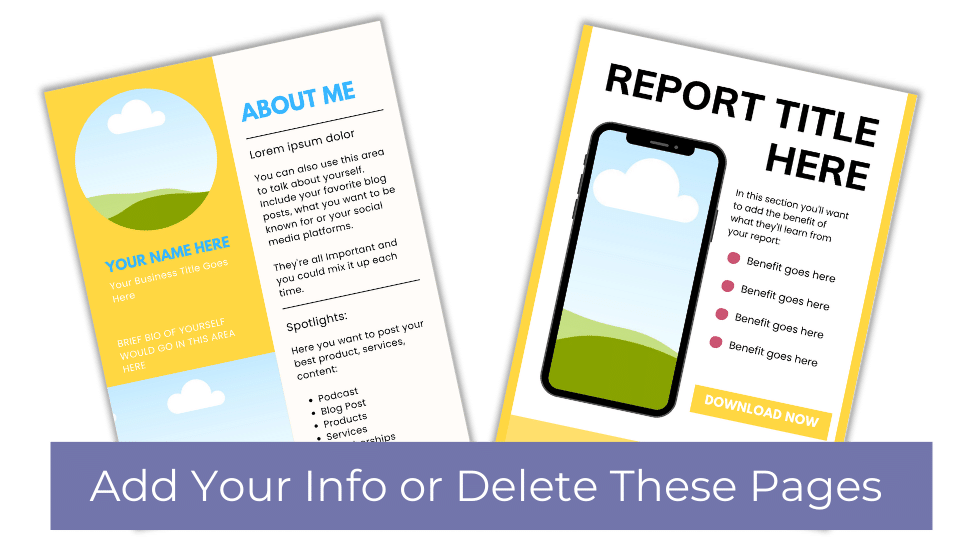 Inside the Canva Challenge, you'll notice two pages where you can add your own information. These include the Copyright page, the author page, and a call to action page. If you don't want to use these - make sure you delete them before you create a PDF for your audience.