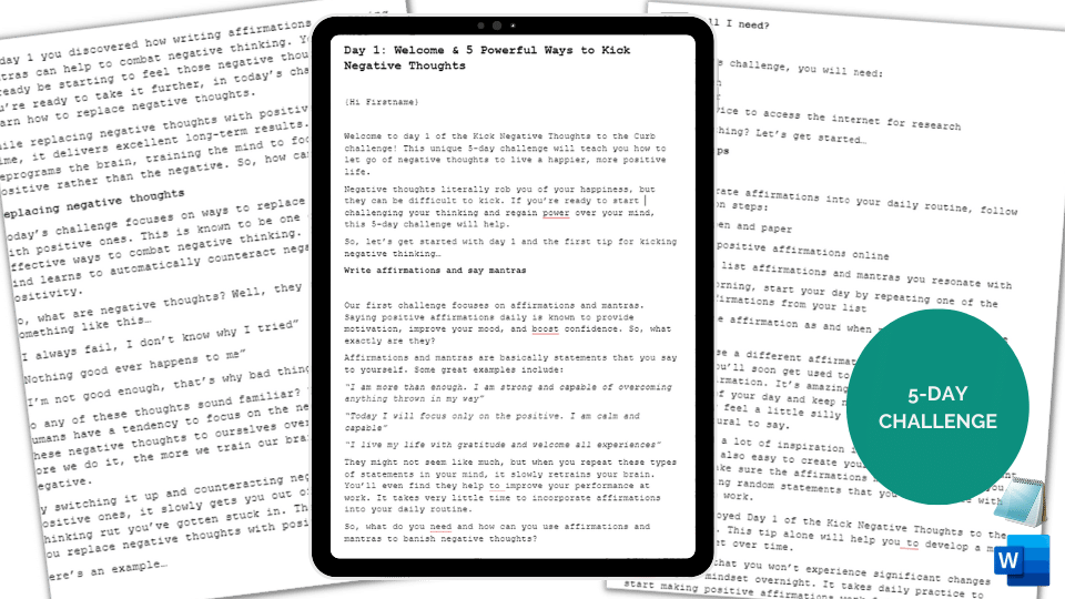 5-Day Challenge Kick Your Negative Thoughts To The Curb (Word & Text)