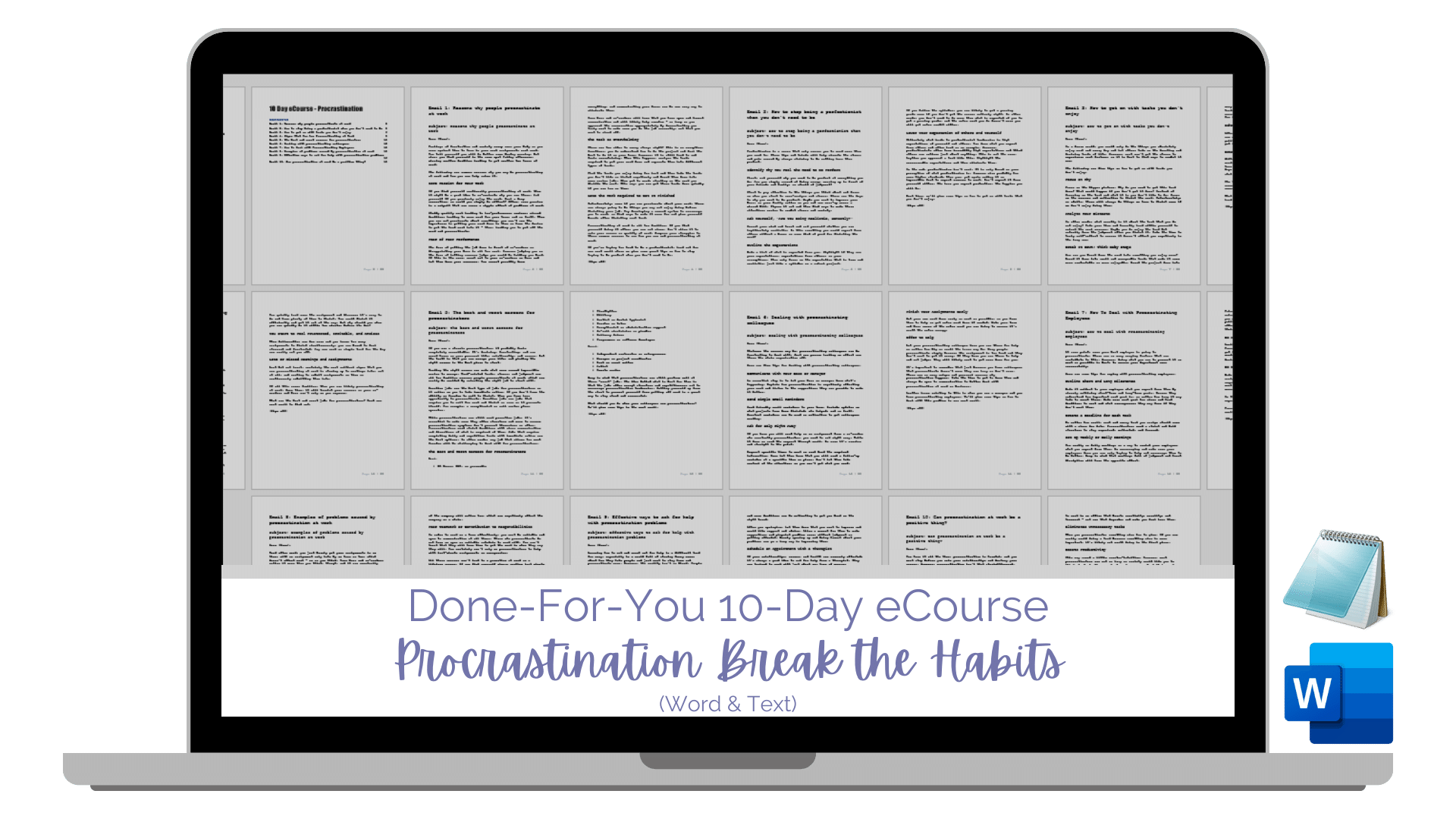 - 10-Day eCourse Procrastination: Why It Happens & How to Break the Habit (Word & Text)